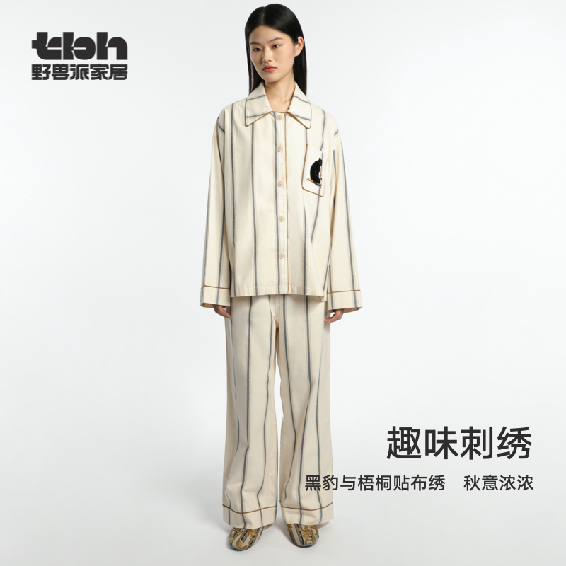 "Urban Beast" Black Leopard Thickened Full Cotton Flannel Suede Home Suit Deep Blue Striped "Urban Beast" Black Leopard Thickened Full Cotton Flannel Suede Suit Michule Stripes