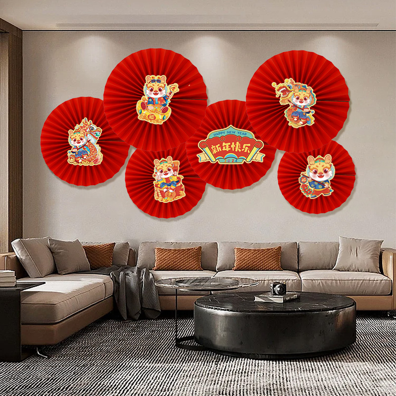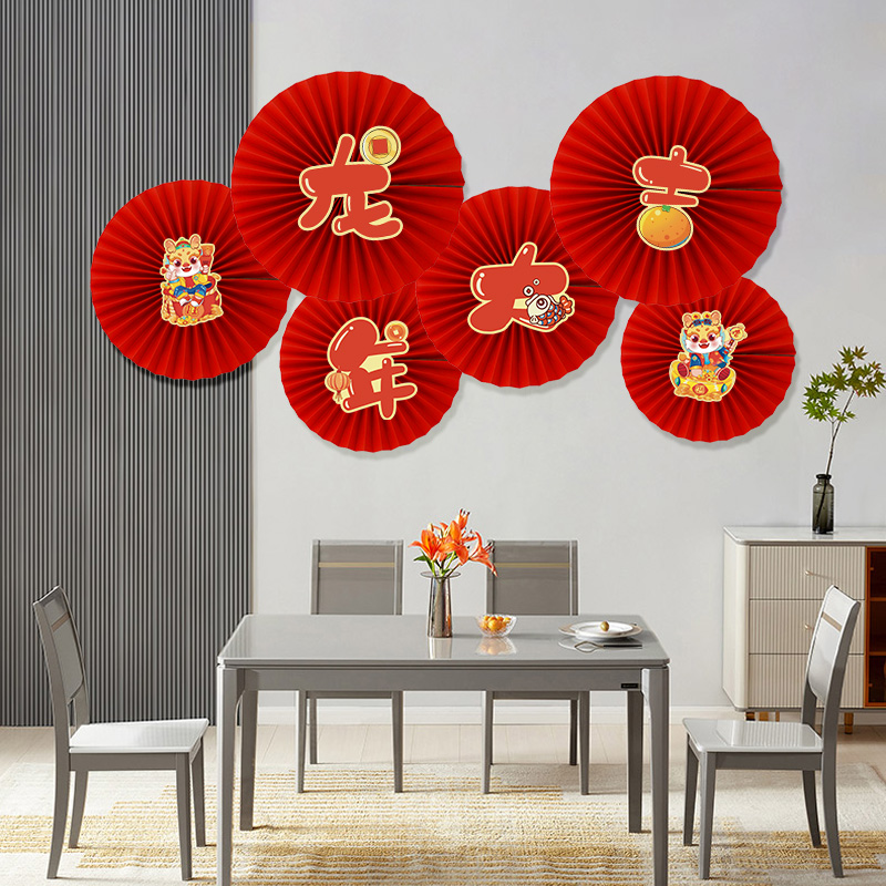 Dragon Year 2024 Decorative Supplies Paper Fan Flower Background Wall Sticker store New Year venue Spring Festival Indoor atmosphere arrangement-Taobao