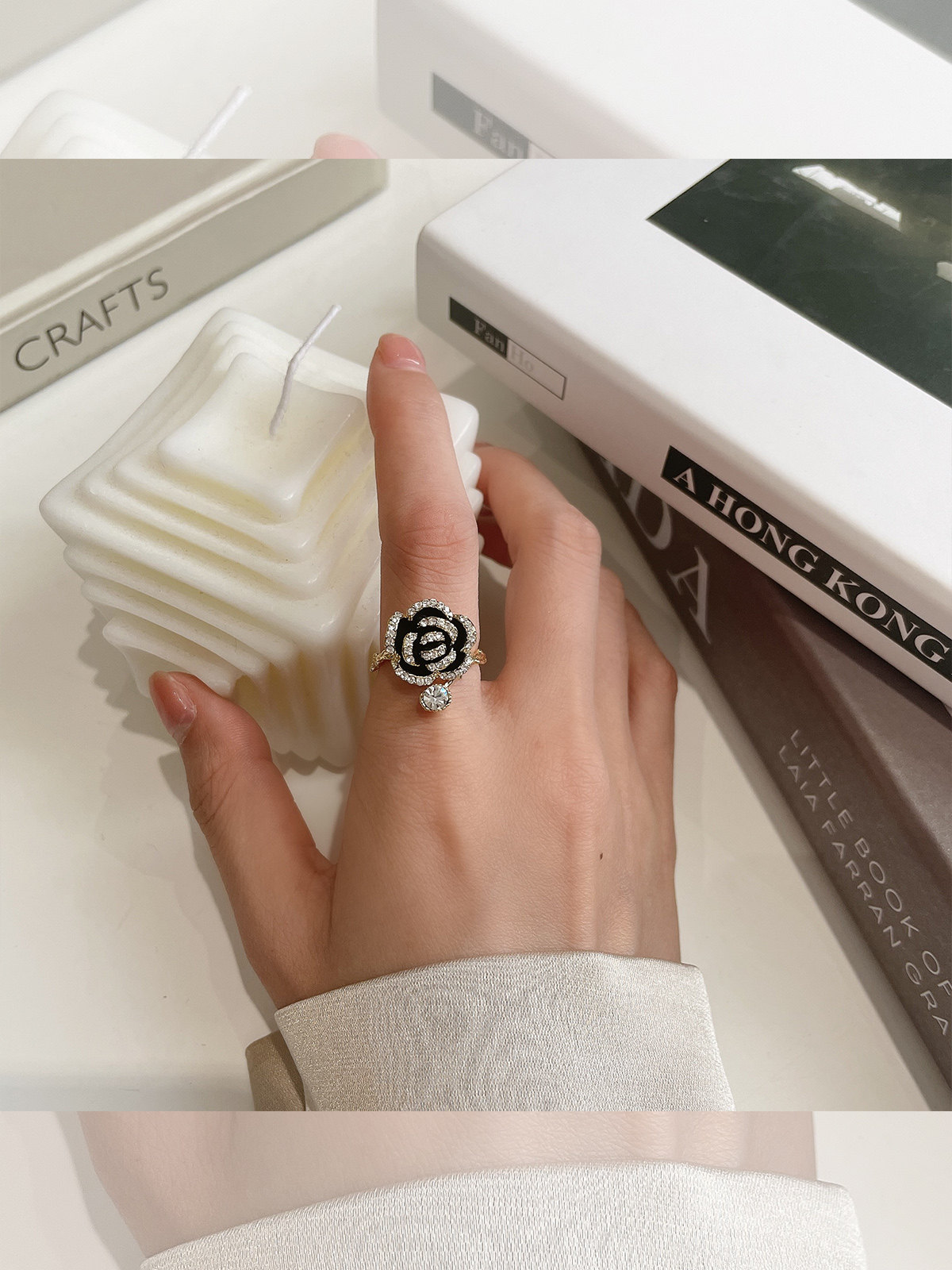 Black Hills Tea Flower Ring Female Niche Design Light Extravagant Advanced Sensuality Fashion Personality Retro Opening Forefinger Ring New-Taobao