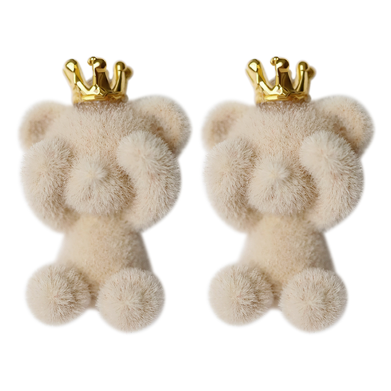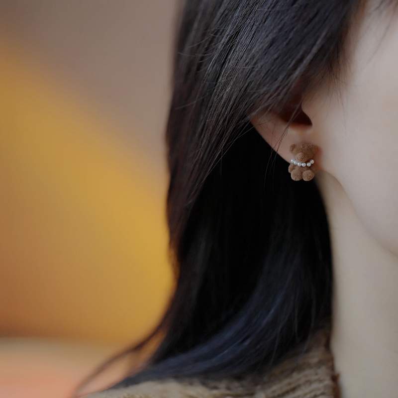 Cute little bear flocking earrings 2023 new exploits autumn and winter retro small crowdsourced design Unique earnds sweet and beautiful ear decoration-Taobao