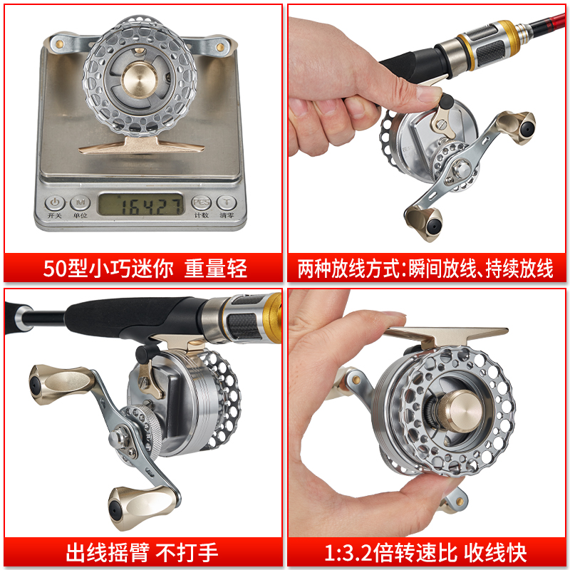 Light Mooring Small Flying Tiger 50 Mini Mini Small Raft Wheel Ice Fishing Wheel Front Fight Wheel Bridge Raft Fishing Winter Fishing Ferries All-metal-Taobao