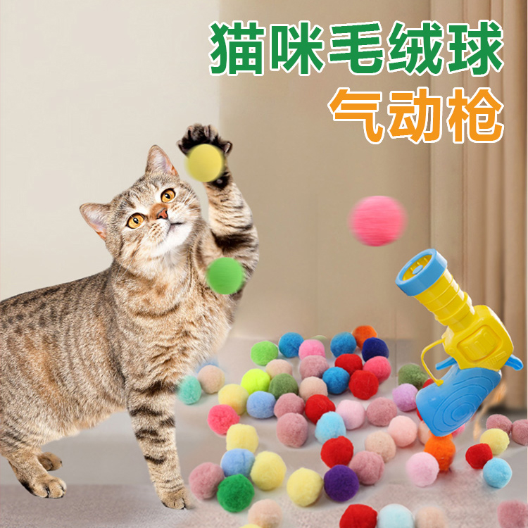 Cat toy wool ball suede ball launch gun selloff self-hi demuted silent plush ball elastic resistant to kitty cat stick-Taobao