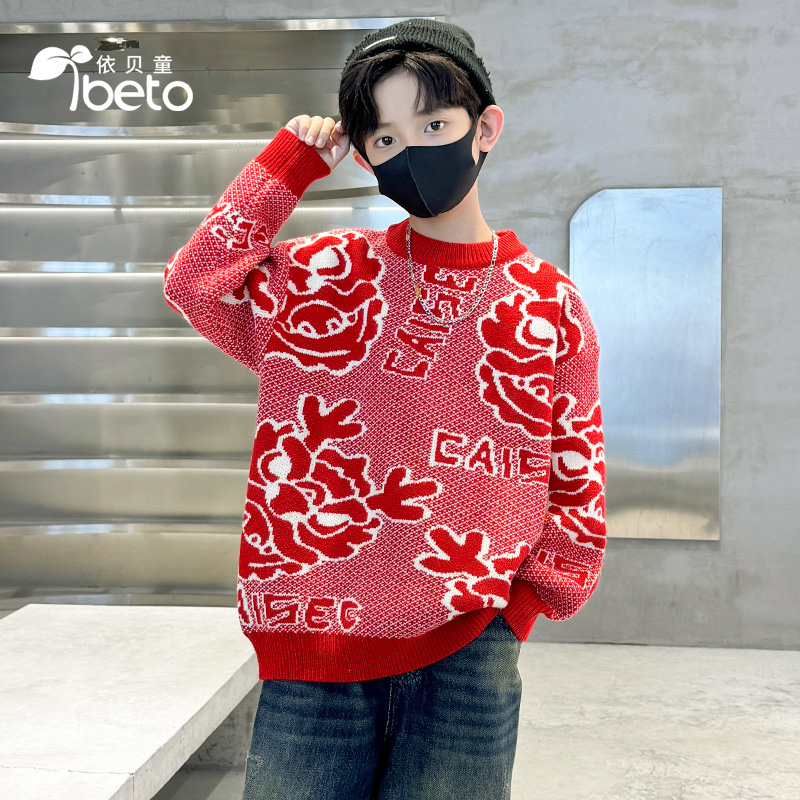 Ybetong Boy Gush Fur Coat Autumn Winter Clothing New Men's Great Boy Red Beiyenwear Winter Thickening Needle Weaselshirts-Taobao