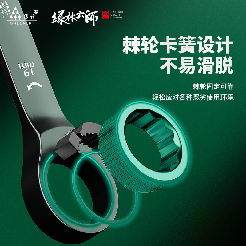 Green Forest Master Ratchet Wrench Two-way Fast Plum-Shaped Hand Automatic Small Opening Dual-use Wrench Tool Suit-Taobao