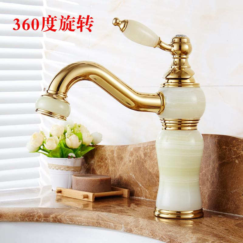 Full copper antique tap hot and cold European style golden face basin tap single hole table basin washbasin jade tap-Taobao