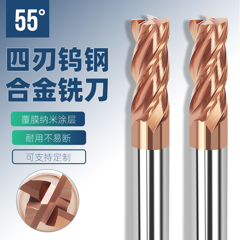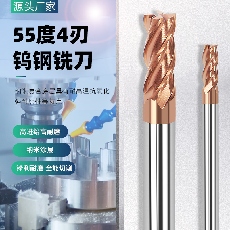 55-degree tungsten steel carbide milling cutter 4-edge steel with lengthened flat-bottomed vertical milling cutter CNC machining centre numerical control cutter-Taobao