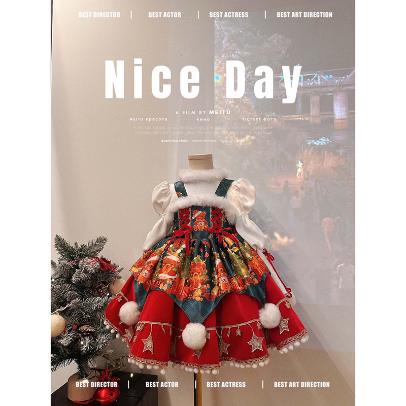 2023 new girl dress with dress and autumn winter Christmas children Loretta princess nepotism women's gown dress fluffy dress-Taobao
