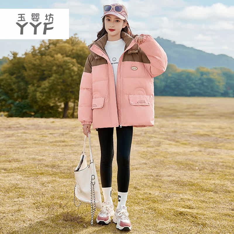 Jade Baby Workshop Short down jacket clothes 2023 new female big children blouses girls jacket Leisure loose Thickened Tide Cards-Taobao