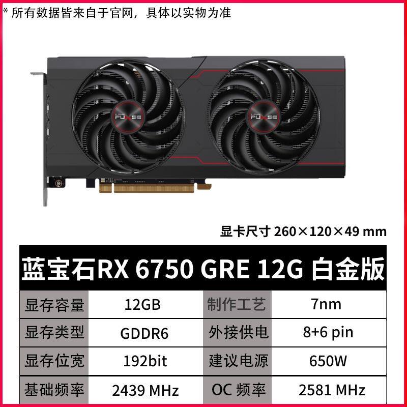 Sapphire RX6750 GRE 12G Platinum version Polar version Overseas Edition Extreme Light Edition Computer Games Graphics Cards-Taobao