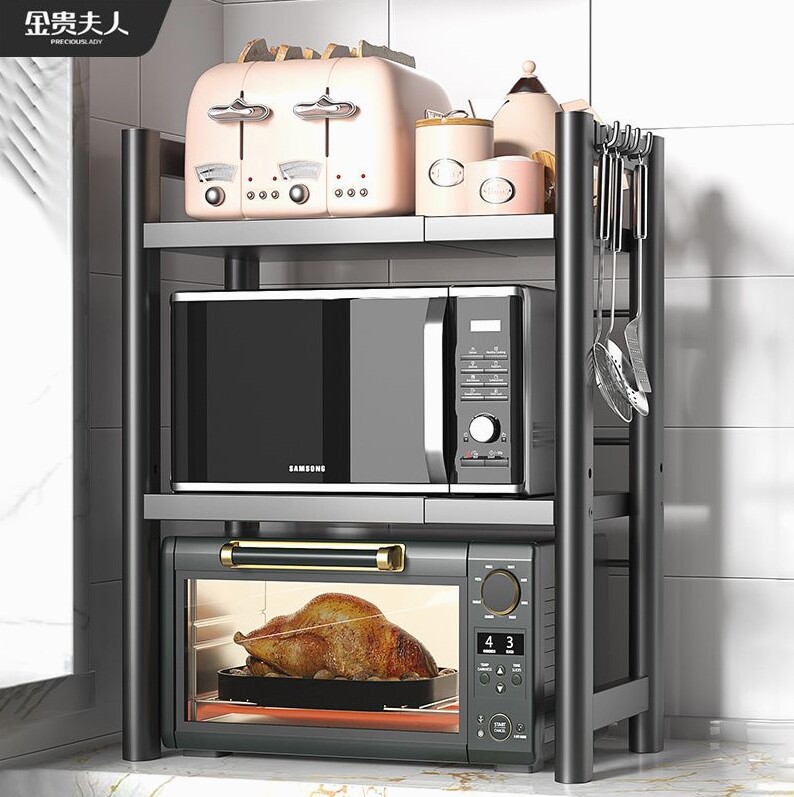 Microwave oven bracket telescopic kitchen shelving oven rack Home 2nd floor table top table electric rice cooker contained-Taobao