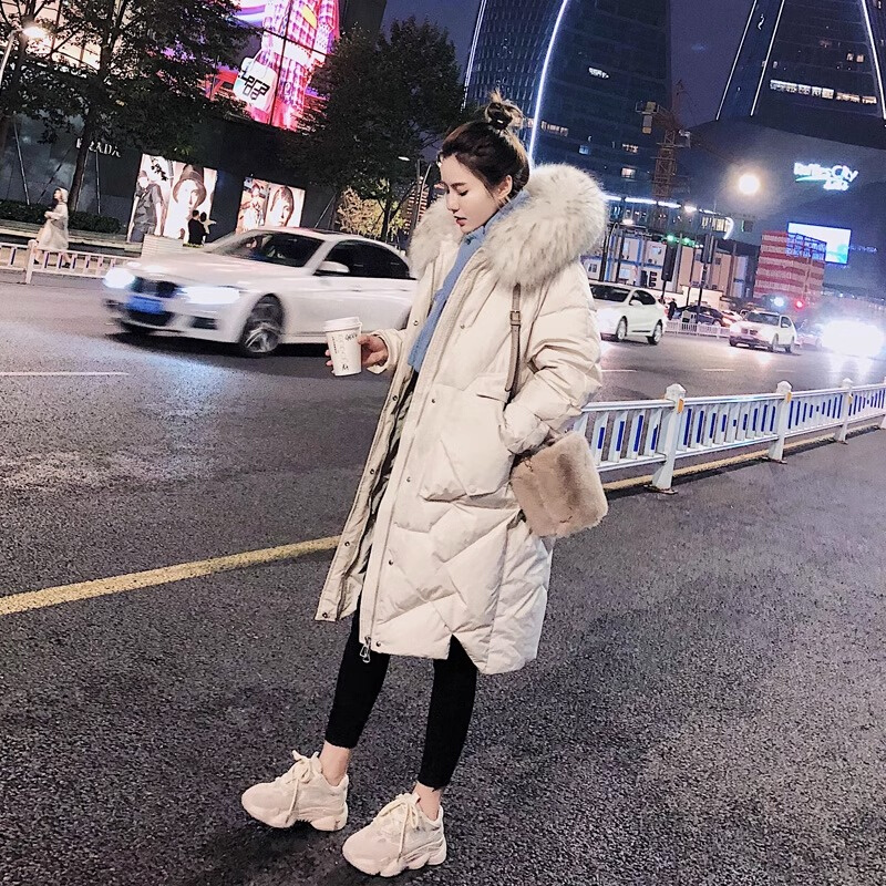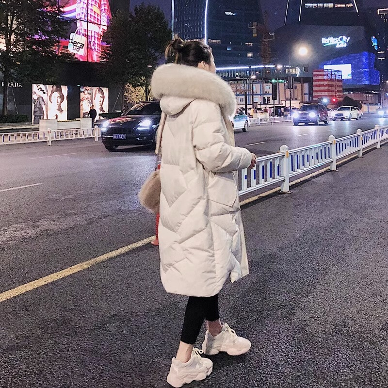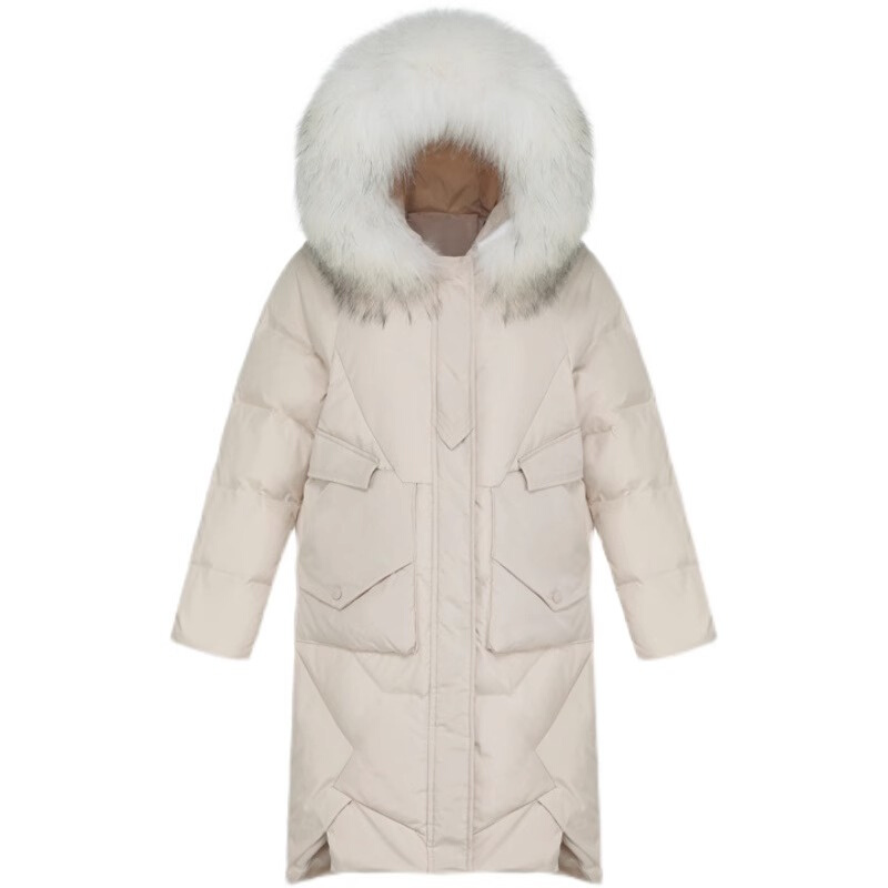High-end Design Sensation White Duck Down Down Clothing Woman 2023 Winter New Fashion Lianhood Large fur collar with long jacket-Taobao