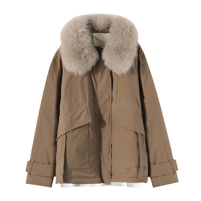 Design sensation Mao collar café Overcome Coats Women 2023 Autumn Winter New Loose Warm Thickening Tooling Cotton Clothes-Taobao