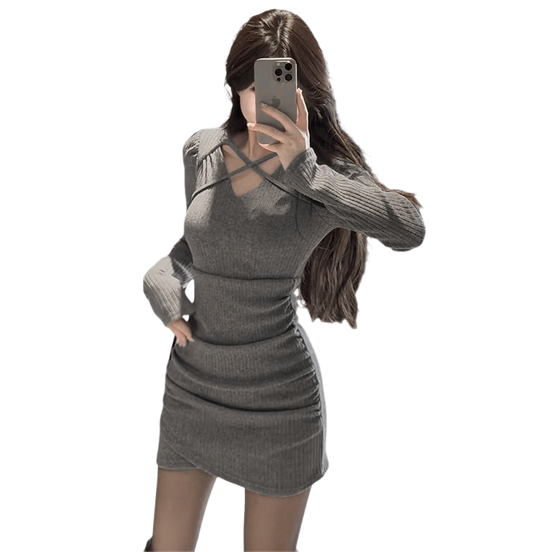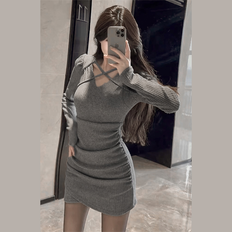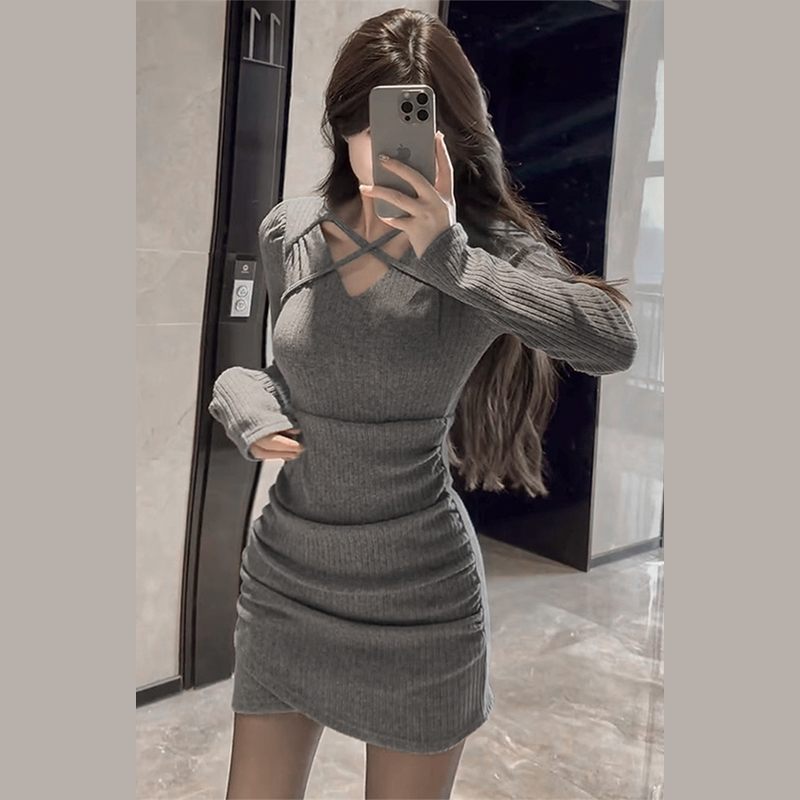(grey) (French temperament high-end refinement ultra-good-looking 2024 spring style women's clothing advanced feeling wearing a little hitch New Year New Year's Eve gown) Sexy cross-year wardrobes (black) (face-style gas)