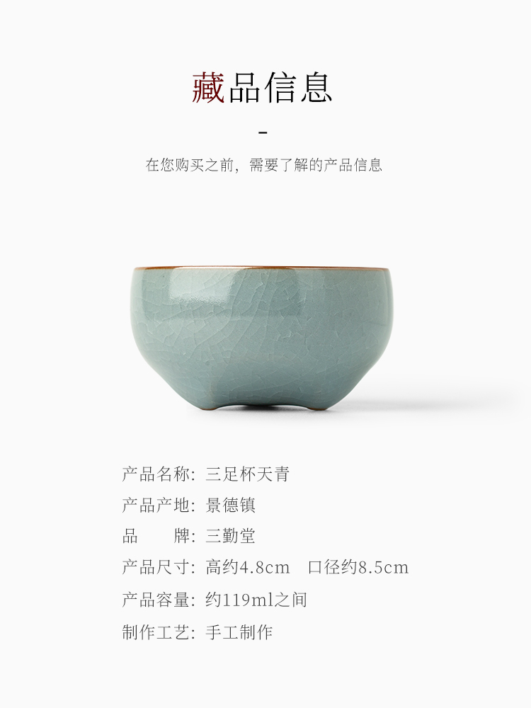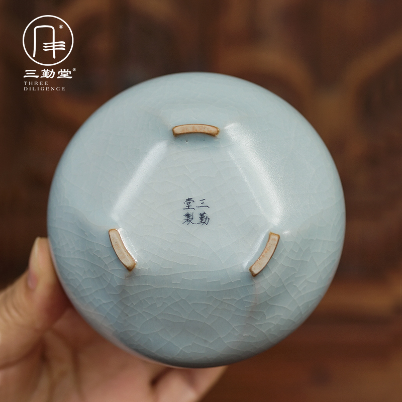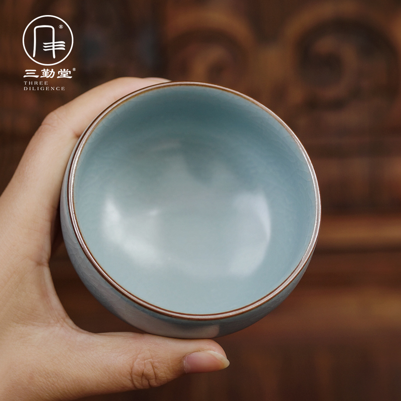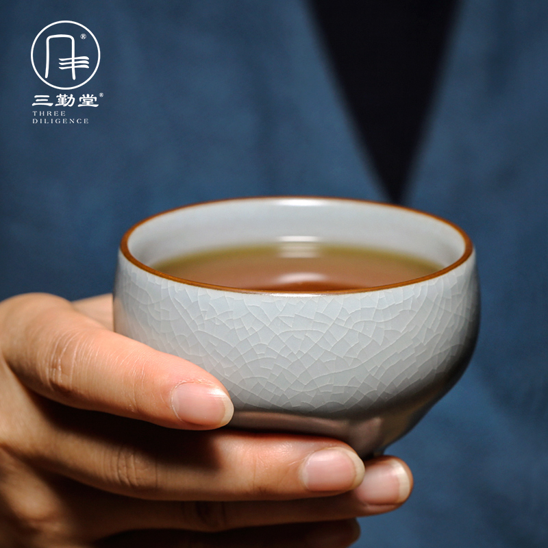 Sanqintang Pu'er tea cup white tea master cup men's and women's Ru kiln tea tasting single cup Jingdezhen ceramic Kung Fu tea set