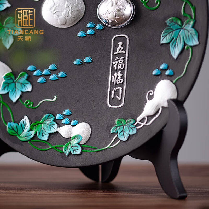 Heavenly activated charcoal sculptures Wufu Linmen Living room Xuanguan Office Home Pendulum Pieces Pure Silver Gourd Practical Creative Gift-Taobao