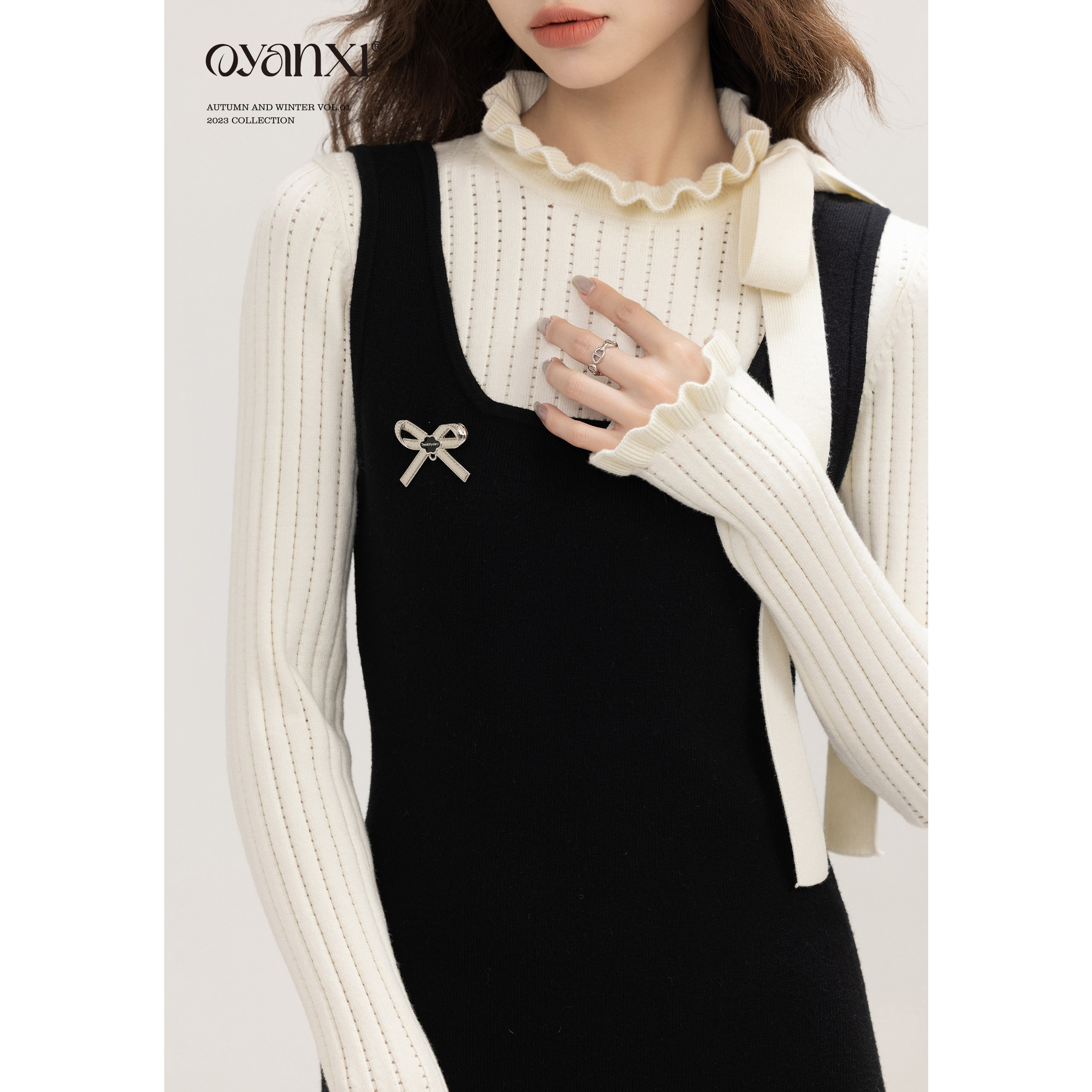 Ouyang Hei Original "Wilderness Galaxy" French style fake two A characters long dresses for winter commutes Conspicuble Dress-Taobao