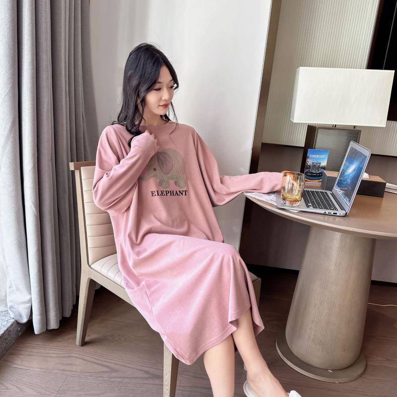 Autumn and winter days Develvet long sleeves Long sleeves big code Garage 200 catty pyjamas woman warm and thin deer T-shirt skirt woman-Taobao