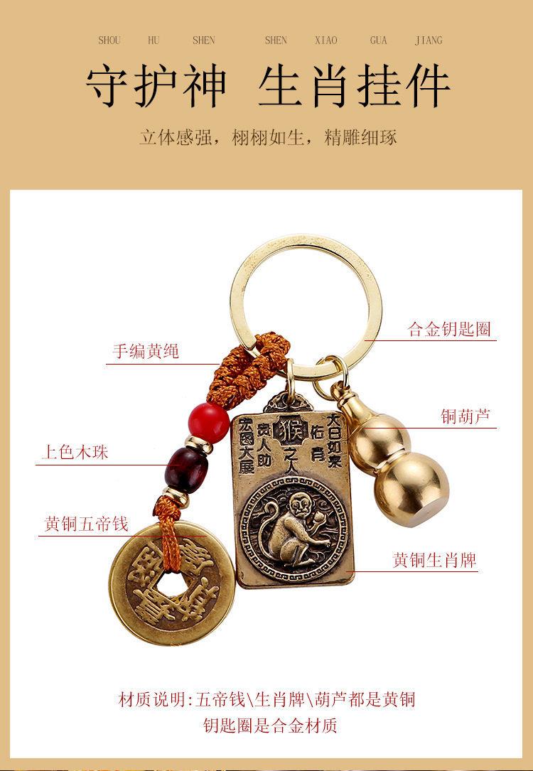 Zodiac hyacinth key buckle gourd Ping An auspicious car key pendant bag hanging decoration small gift-Taobao