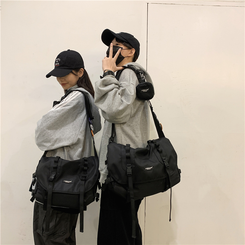 Large Capacity Commuter Single Shoulder Bag Men's Black Inclined Cross Tooling Package Day Ensemble Bag College Student Trend Backpack Woman-Taobao