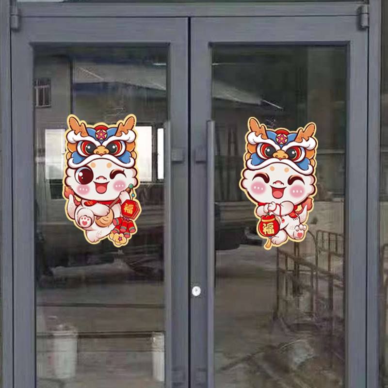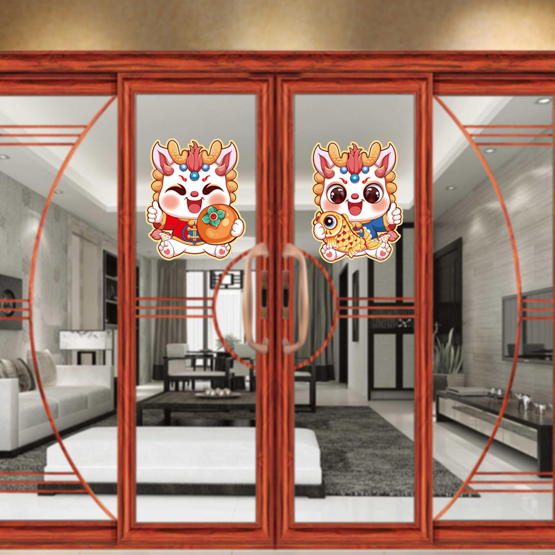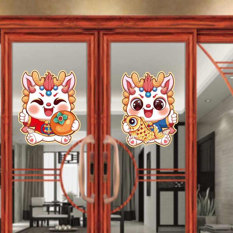 2024 New Year's Gate Sticker Dragon Year Cartoon Stickers Windows Glass Stickers to Door Core Children Cute Big Gift Packages-Taobao