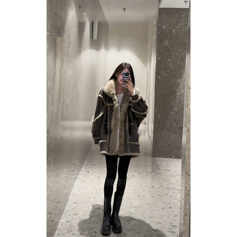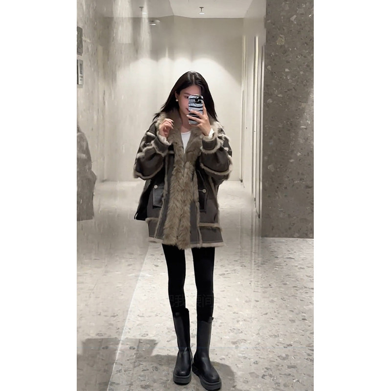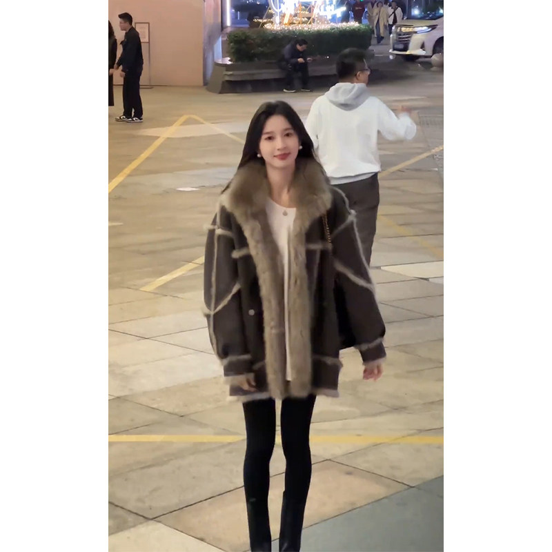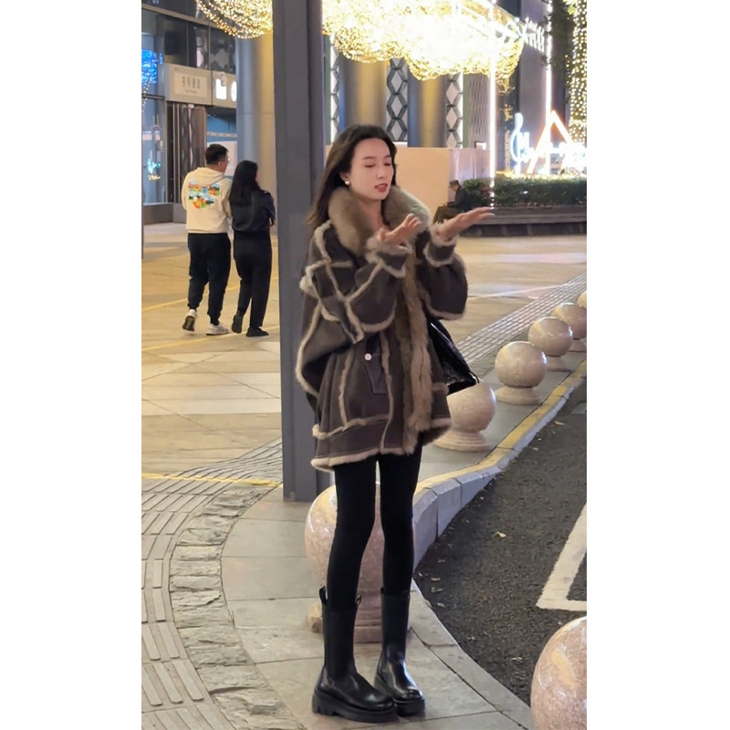 2023 Winter New Exploits Fashion Leather Hair Integrated Medium Long Coat Female Winter Clothing Advanced Sensation Thickened Coat Autumn Winter-Taobao