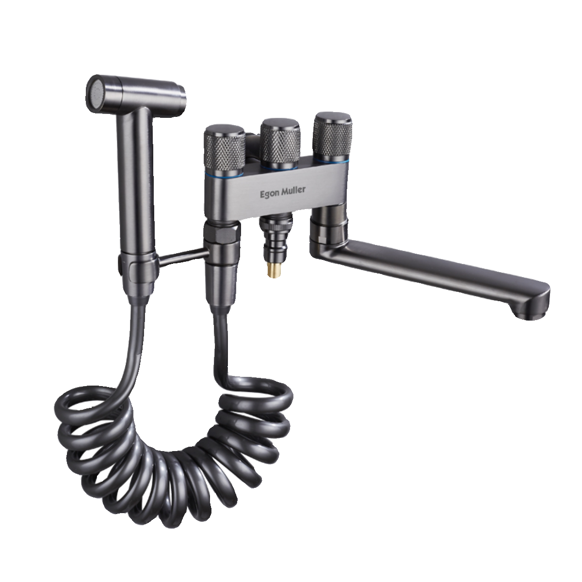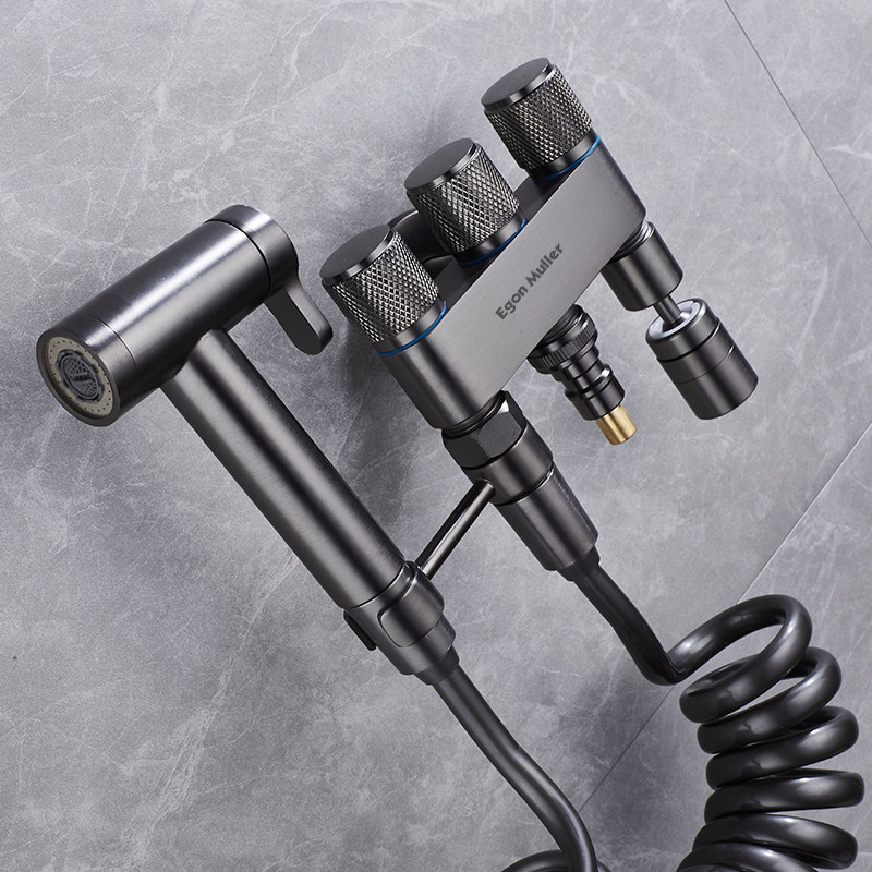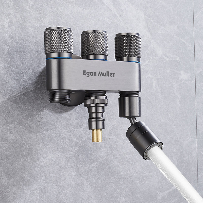 One-in-three-out 18cm outflow pipe (send buckle washing machine joint) Three-out suit (18cm water outlet pipe) key copper spray gun integrated bracket 3 m pipe three out of the suit (18cm out