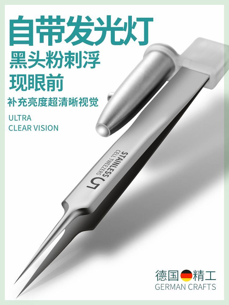 Luminous cell clip heat treatment plus hard overtip 5 Number of clamps dispel black head tweezers with lamp Acne Clip powder Lancet Suit-Taobao