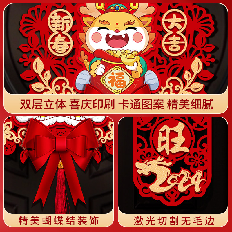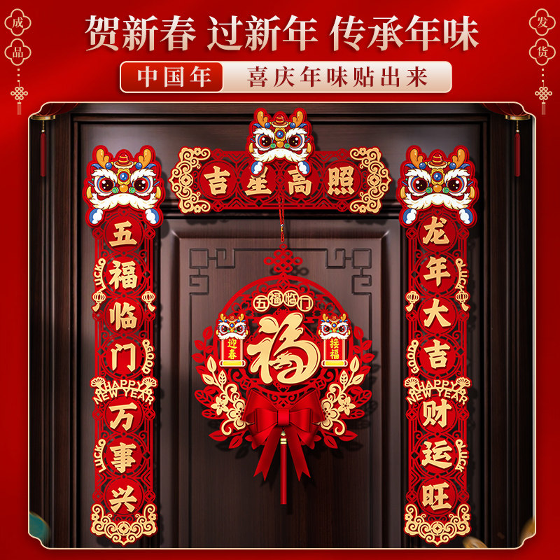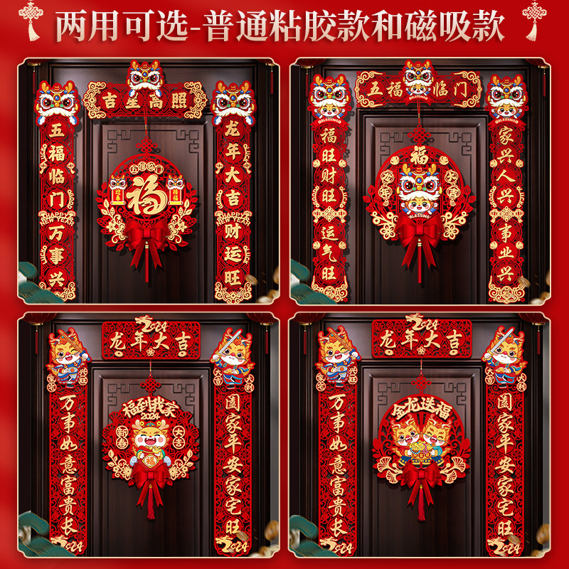 New Year's Magnetic Attraction Couplets for 2024 Home Door Foociate Spring Festival Entrance Doors of the Chinese New Year Spring Festival Decorative Dragon Year Arrangement-Taobao