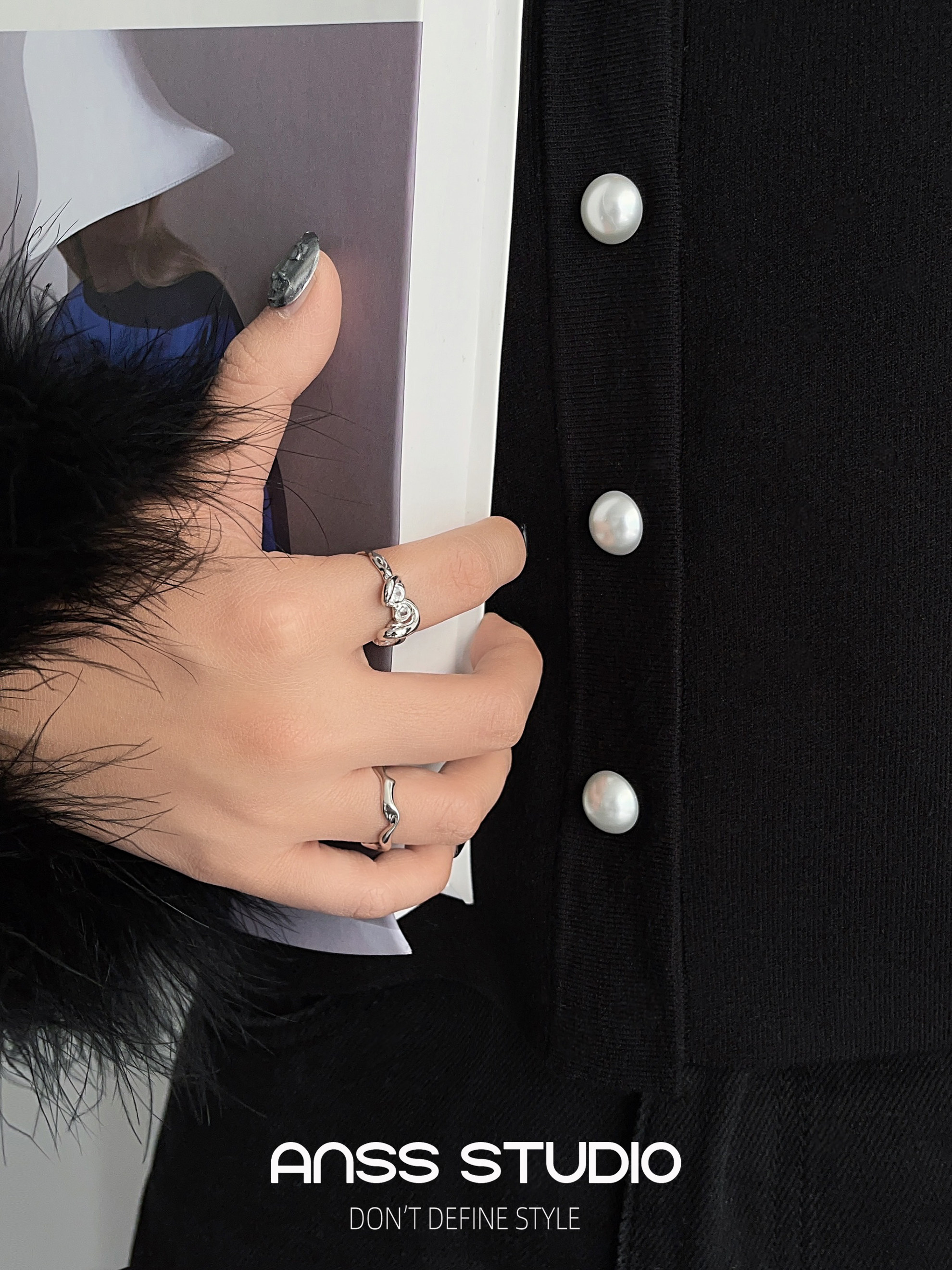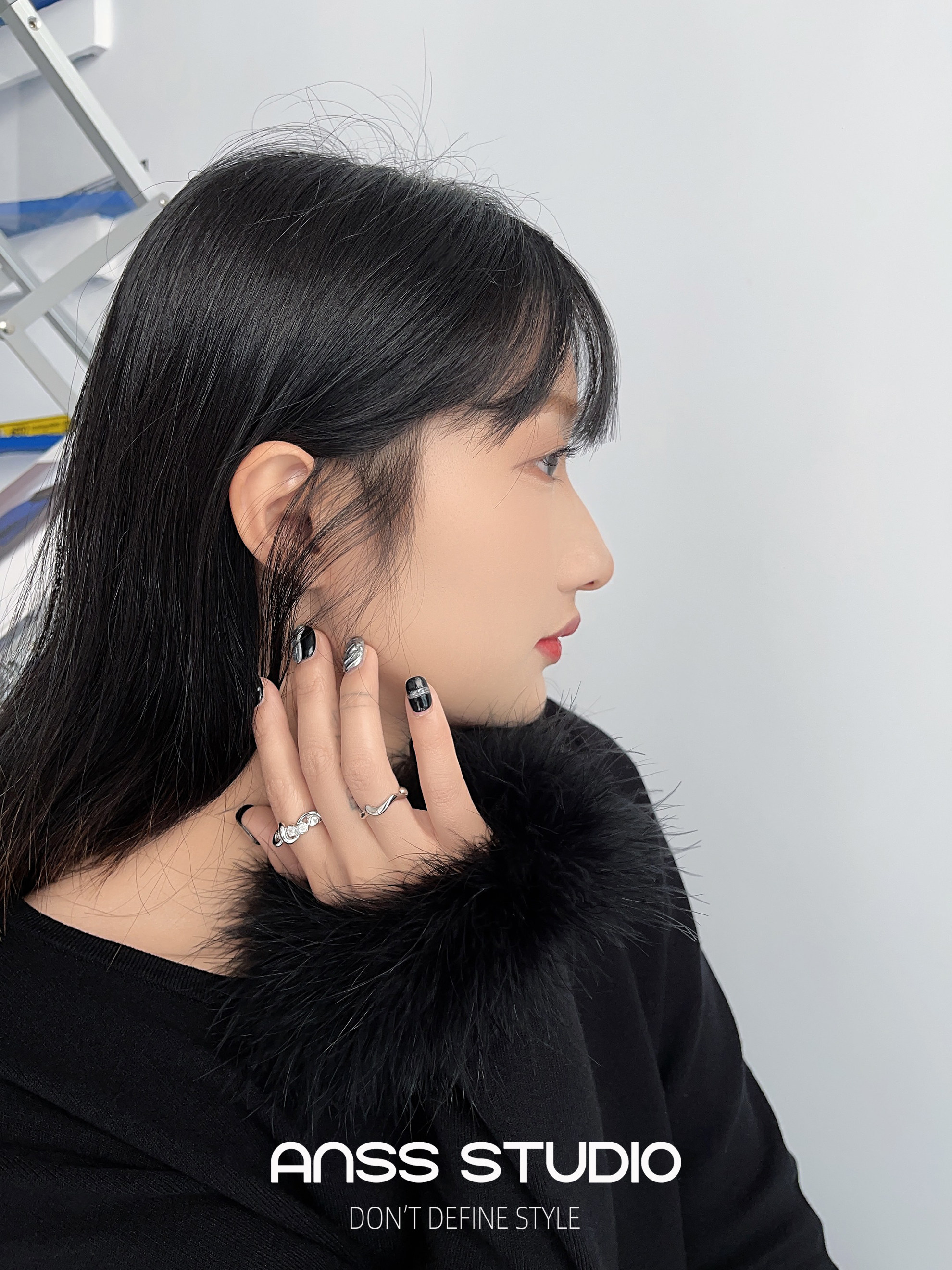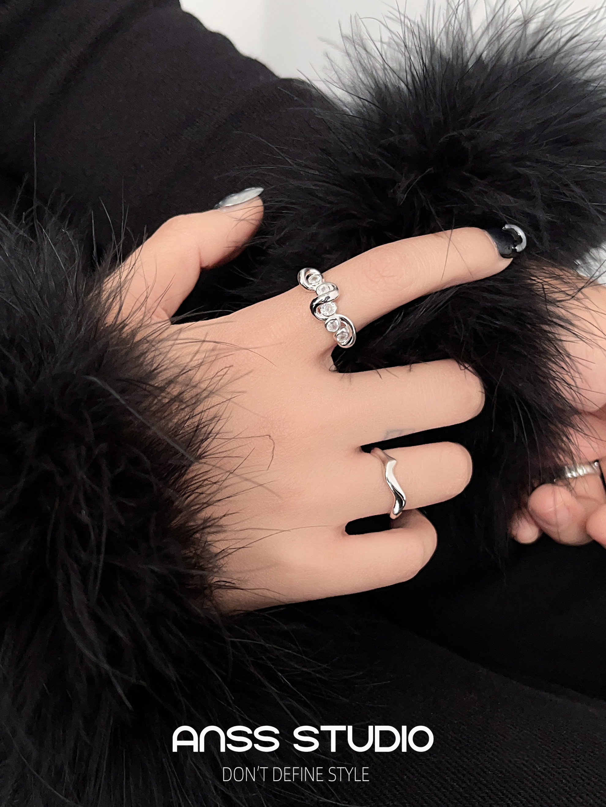 (ANSS) 925 pure silver irregular wave line inlaid drilling opening ring female 100 hitch glossy vegetarian ring finger ring-Taobao