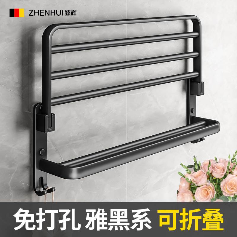 Space Aluminum Black Retro Hair Towel Rack Toilet Containing Rack Bathroom bath towels American Perforated Pendant Suit-Taobao