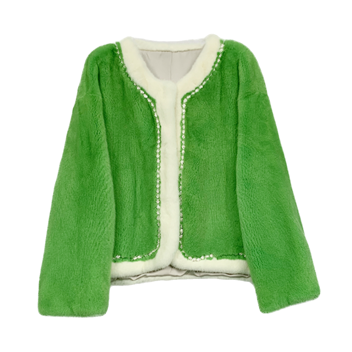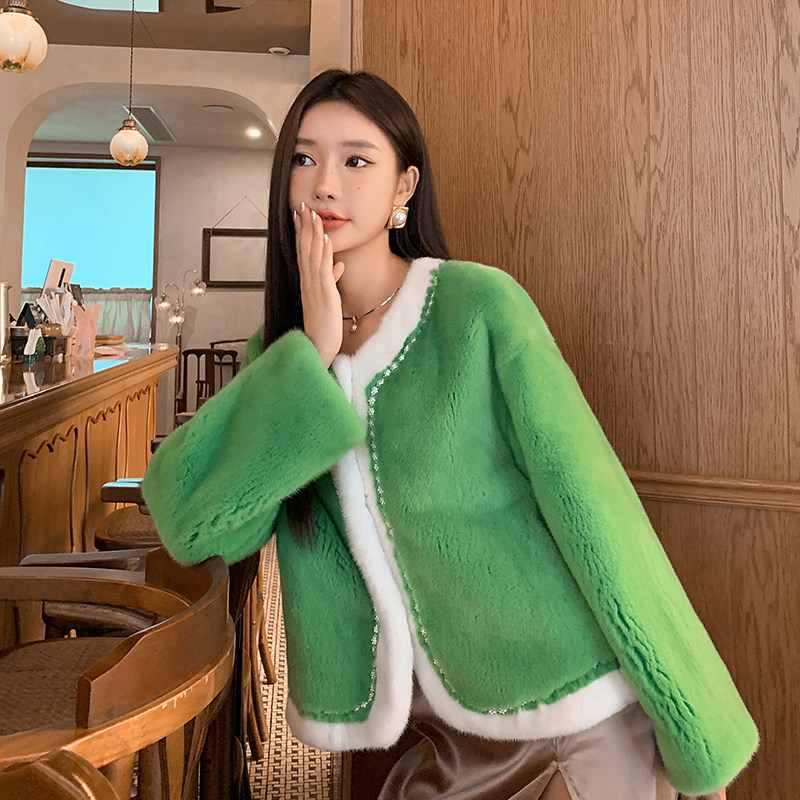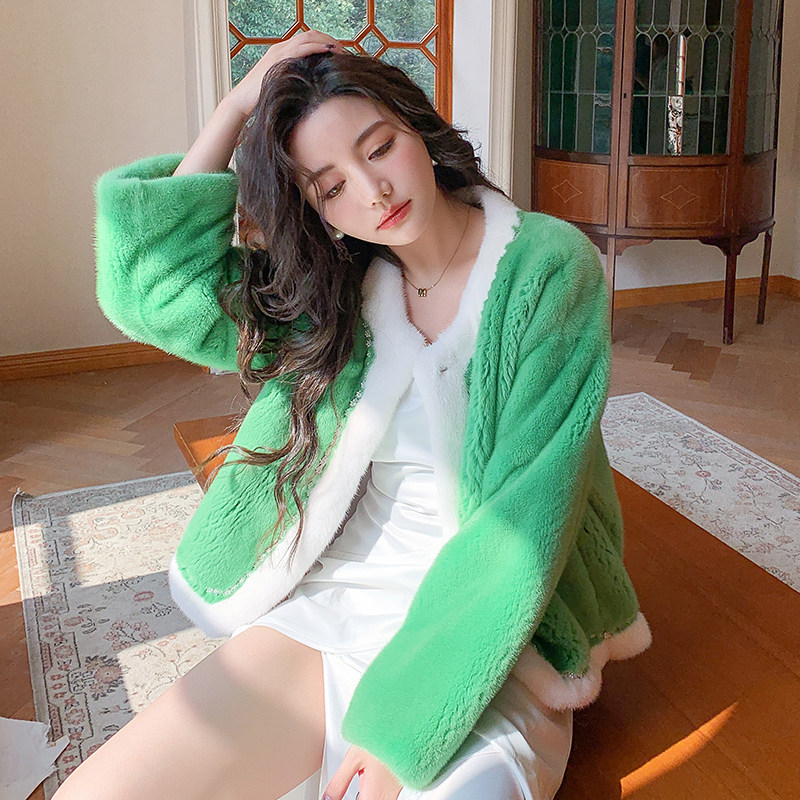 Cute Pony Imported Velvet Ferret Female mink short and small fragrance Feng Shui Drill Button Mink Fur Coat-Taobao