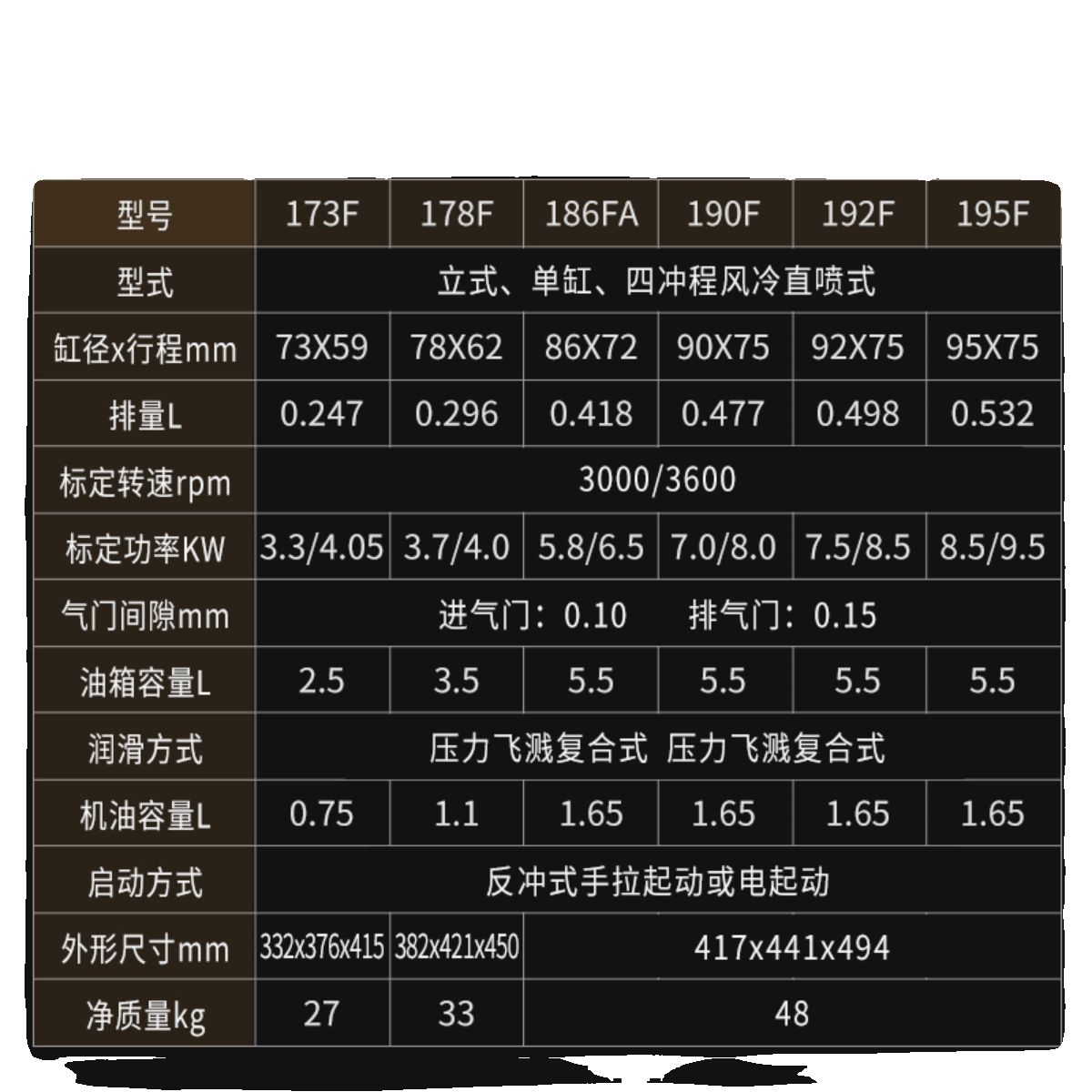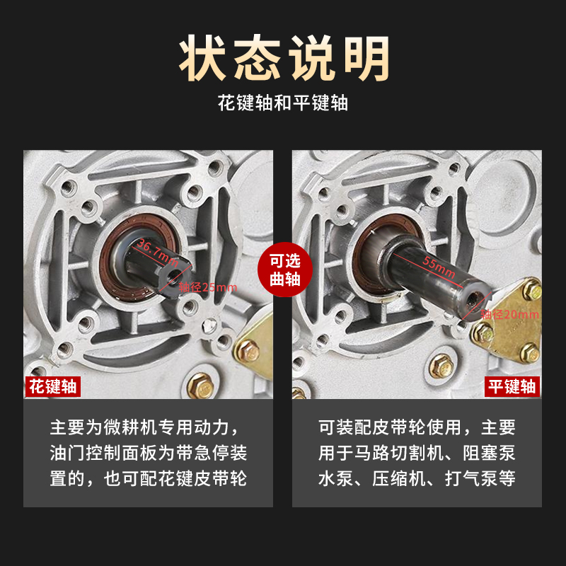 173F hand start of the spline shaft 173F electrically start the castellated shaft 173F hand start the flat key shaft 173F electric start flat key shaft 178F hand start the castellated shaft 178F electrically start the castellated shaft