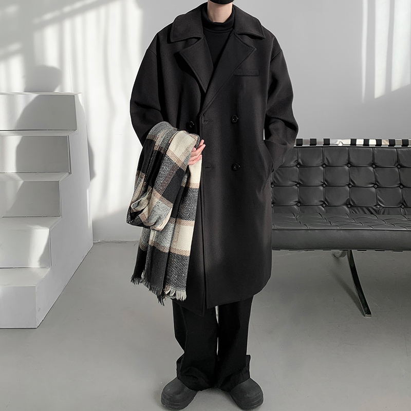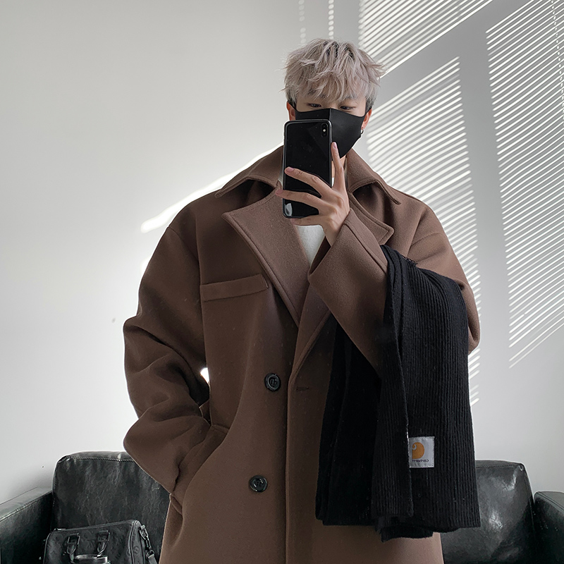 Medium-long style winewear men's winter clip cotton thickened wool coat double-row buttoned with superior coat of Korean high level sensuo handsome-Taobao