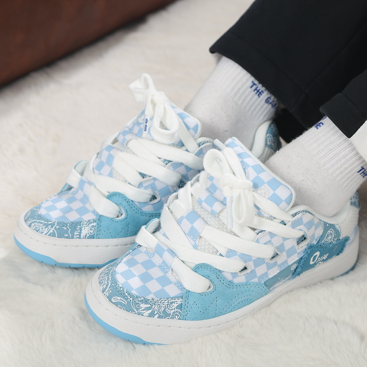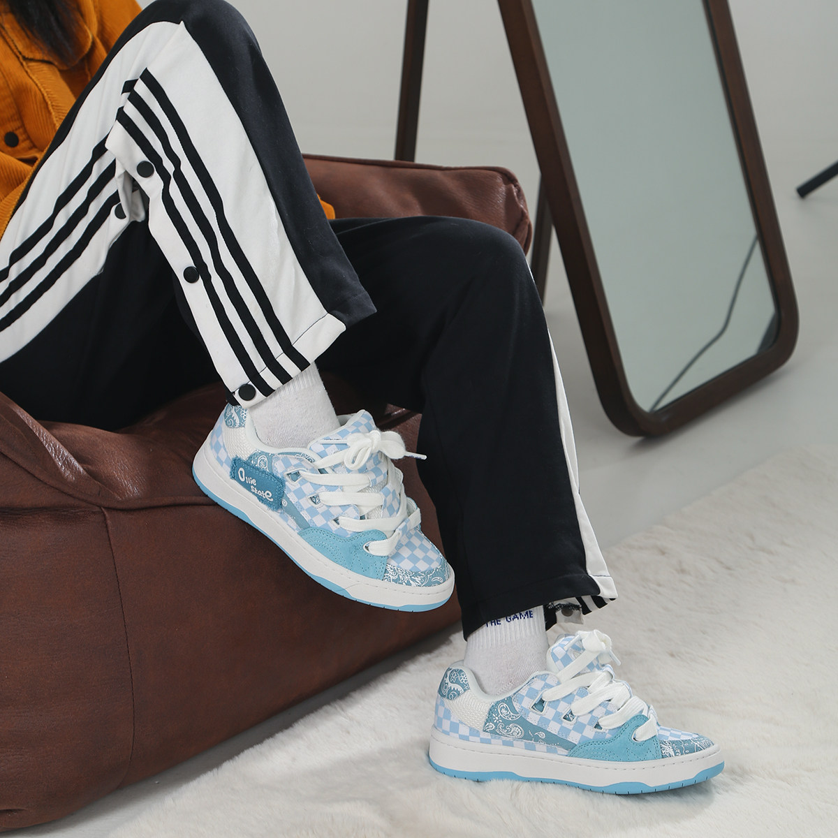 Naughty Olireskate Bread Shoes Blue Cashew Flowers Chessboard PRINTED AUTUMN AND WINTER BAKE2 MEN AND WOMEN SLIP-IN SHOES-Taobao