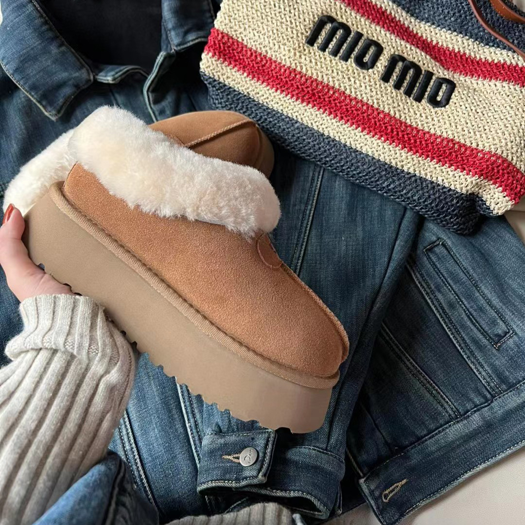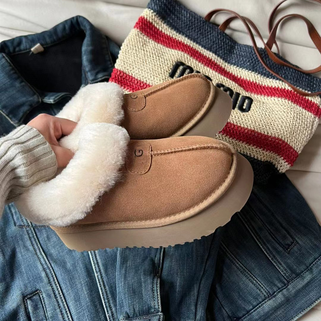 (high stock) wool stars Tutzter snow ground boots winter leather face integrated semi-towing a foot thick bottom fur slippers-Taobao