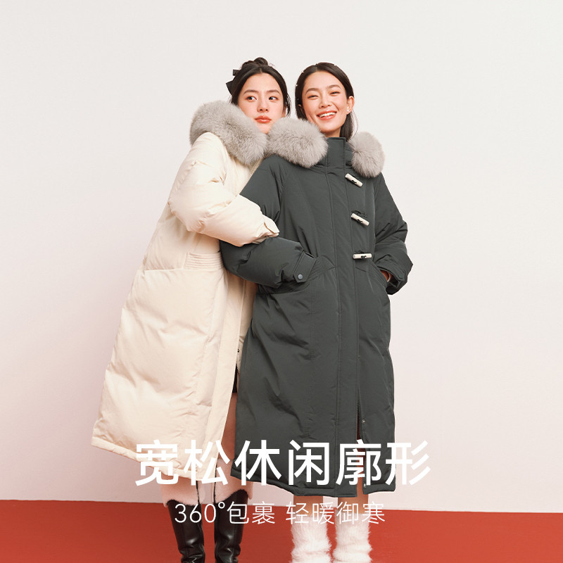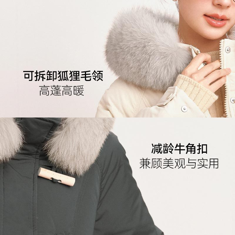 Poetry Mortal Gold Horn Button fox fur collar down jacket 2023 Winter Advanced good-looking Grey grey jacket woman-Taobao