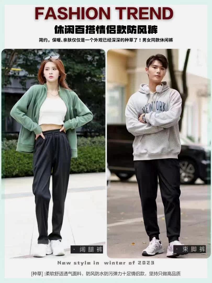 Autumn and winter plus suede thickened male and female same loose large size 6 anti-cotton trousers windproof and waterproof stain-proof warm casual pants-Taobao