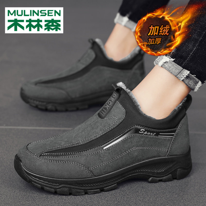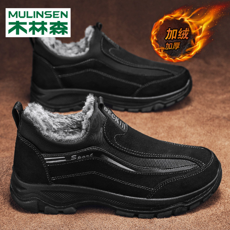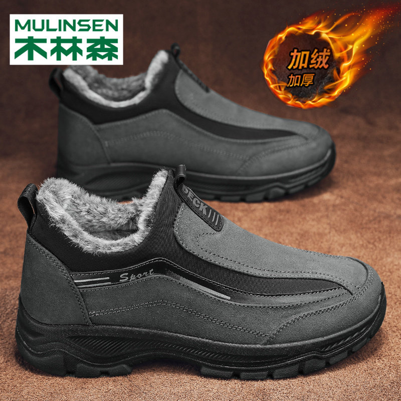 Wood Linson Cotton Shoes Men's Winter Plus Suede 2023 New Warm Sports Labor Pao Dad A Foot Pedal Old Beijing Men's Shoes-Taobao