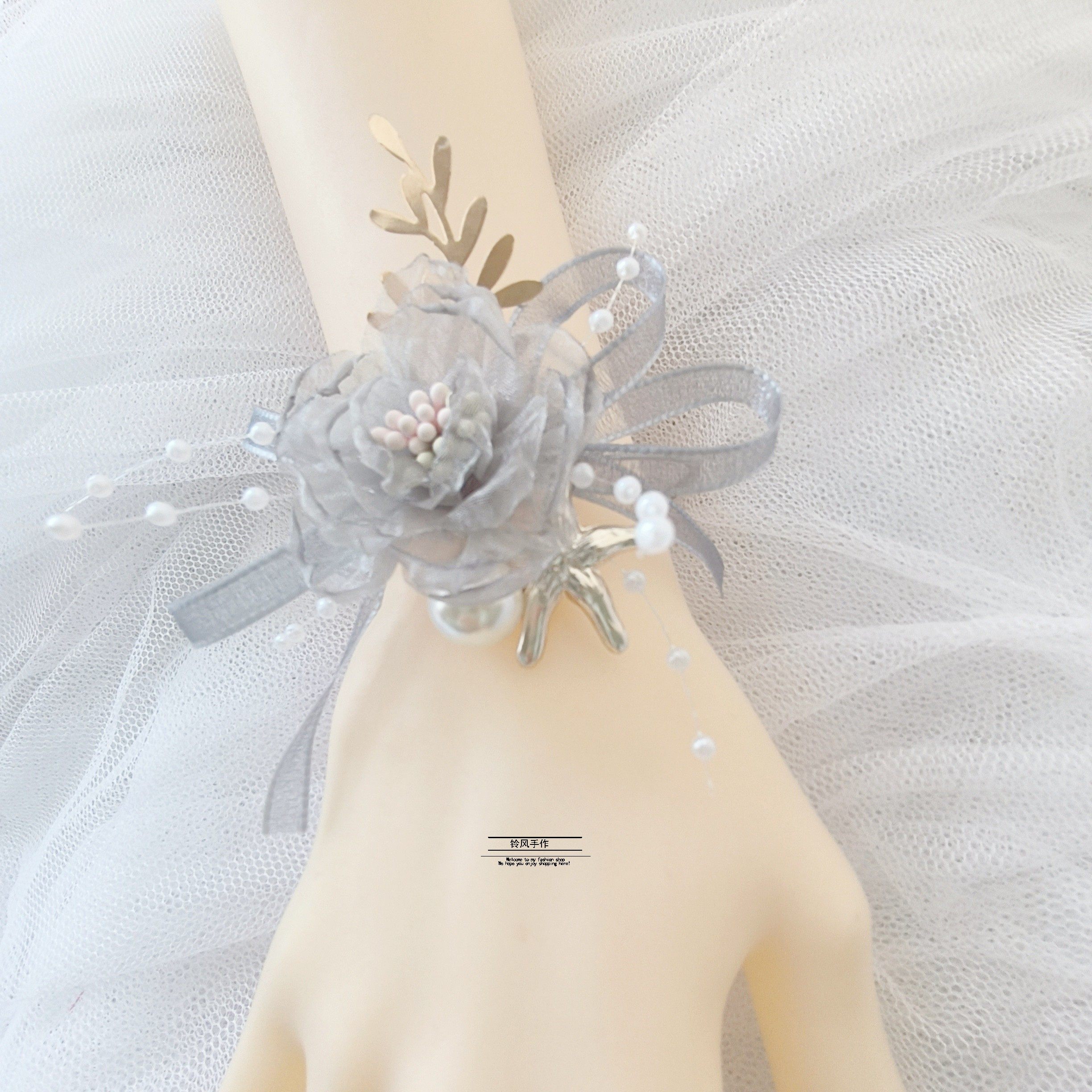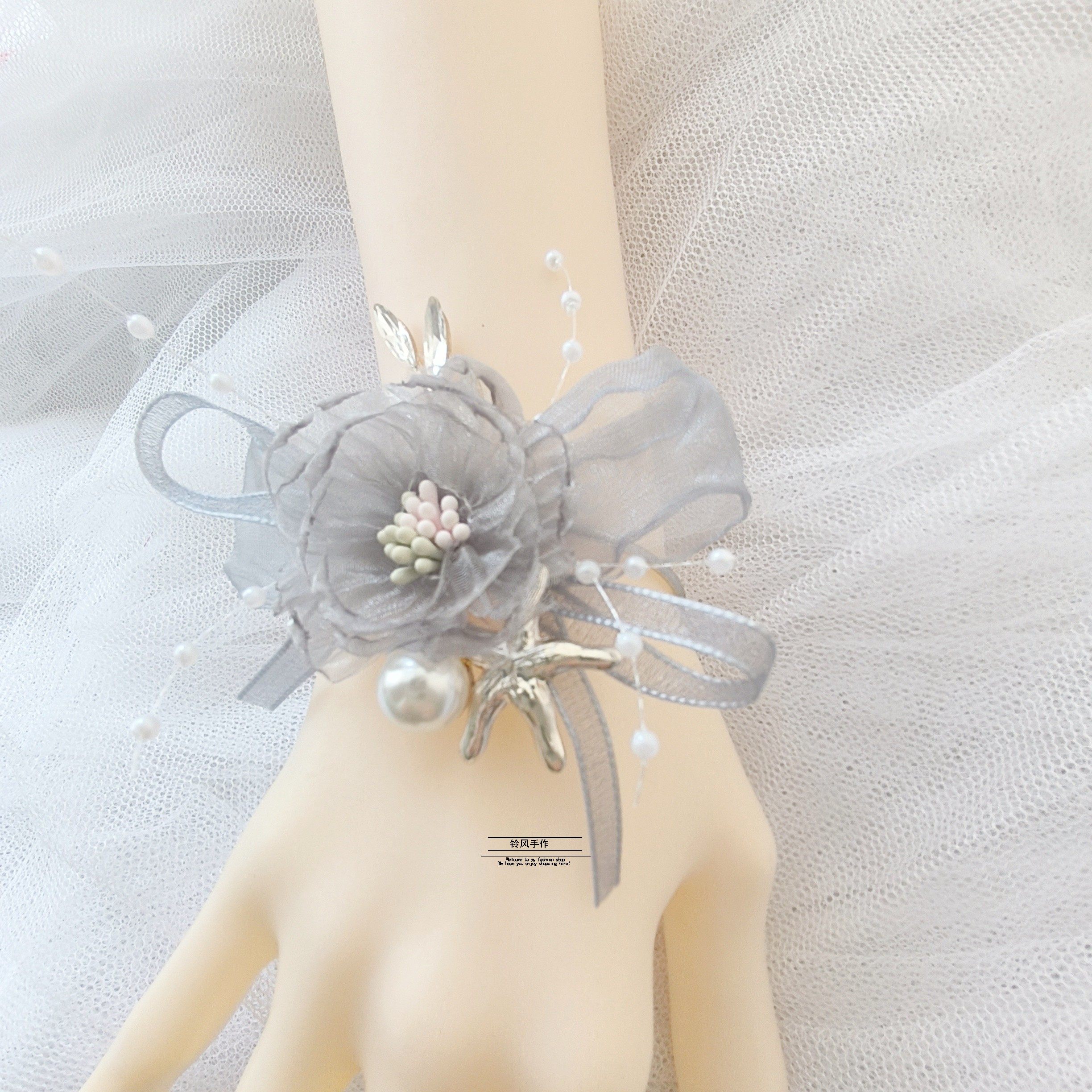 Grey Meritocracy Cute Korean Style Crystal Yarn Bridal Bridesmaid United Wedding Brief Wrists Bracelets Bracelet-Taobao