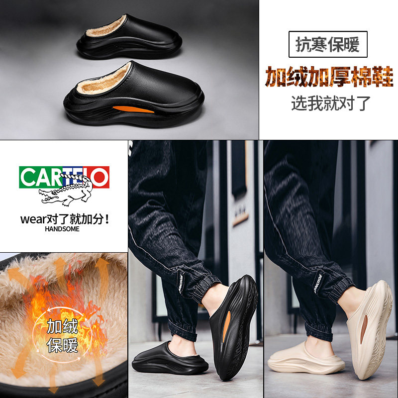 Crocodile Northeastern cotton slippers men's winter plus suede thickened warm cotton shoes men stomps on the outside wearing half slippers-Taobao