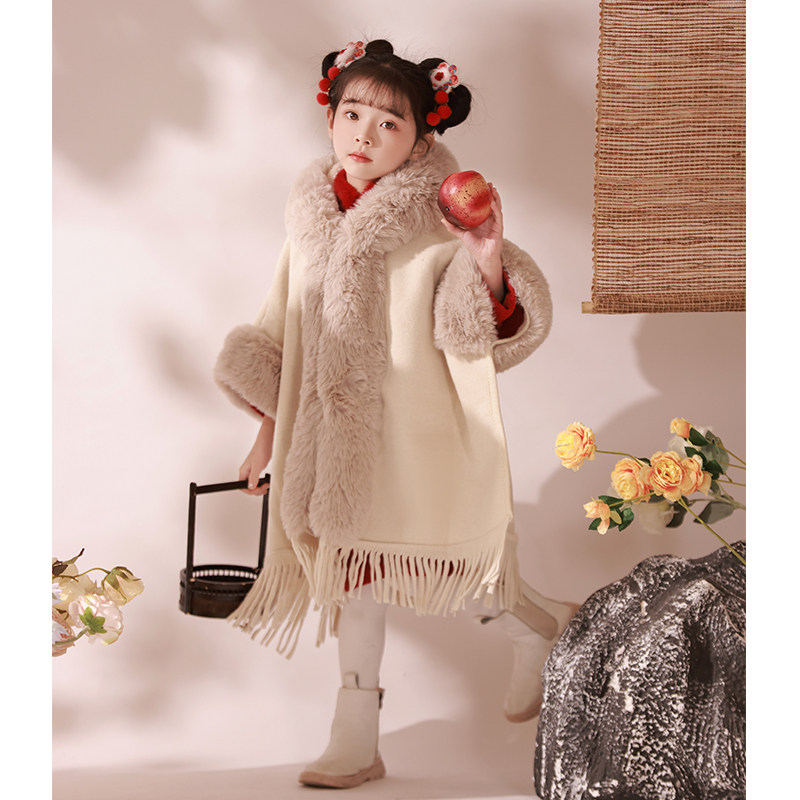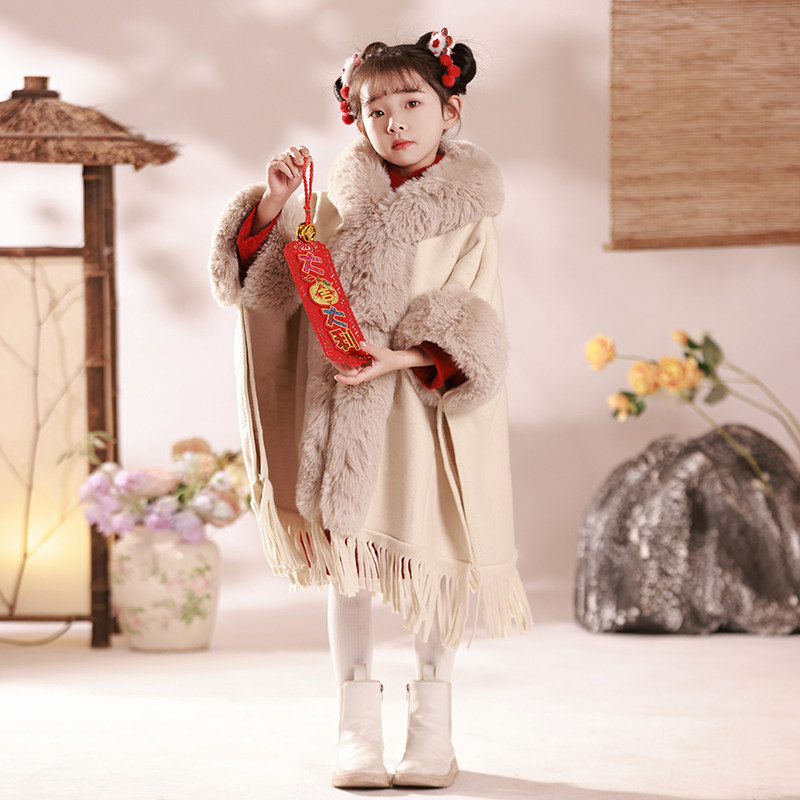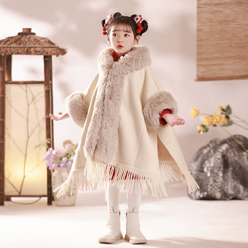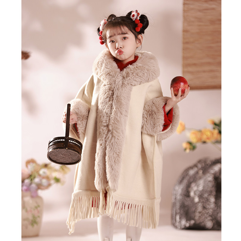 Girl Cloister Cape Hood Autumn Winter Child Hanfu Shawl Shoulder Gush Thickening Outside Windproof Warm Jacket New Chinese-Taobao