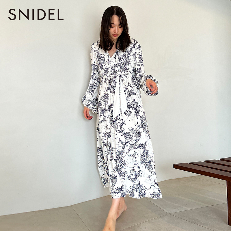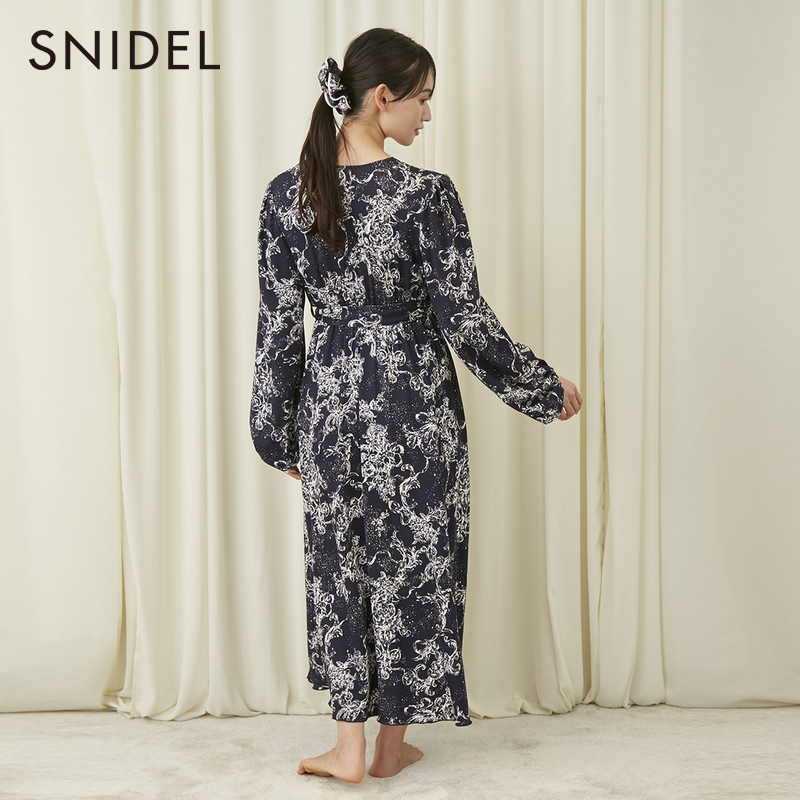 SNIDELHOME2023 autumn winter New products Long sleeves V collar collection waist lacing long style printed sleeping dress SHCO235053 -Taobao