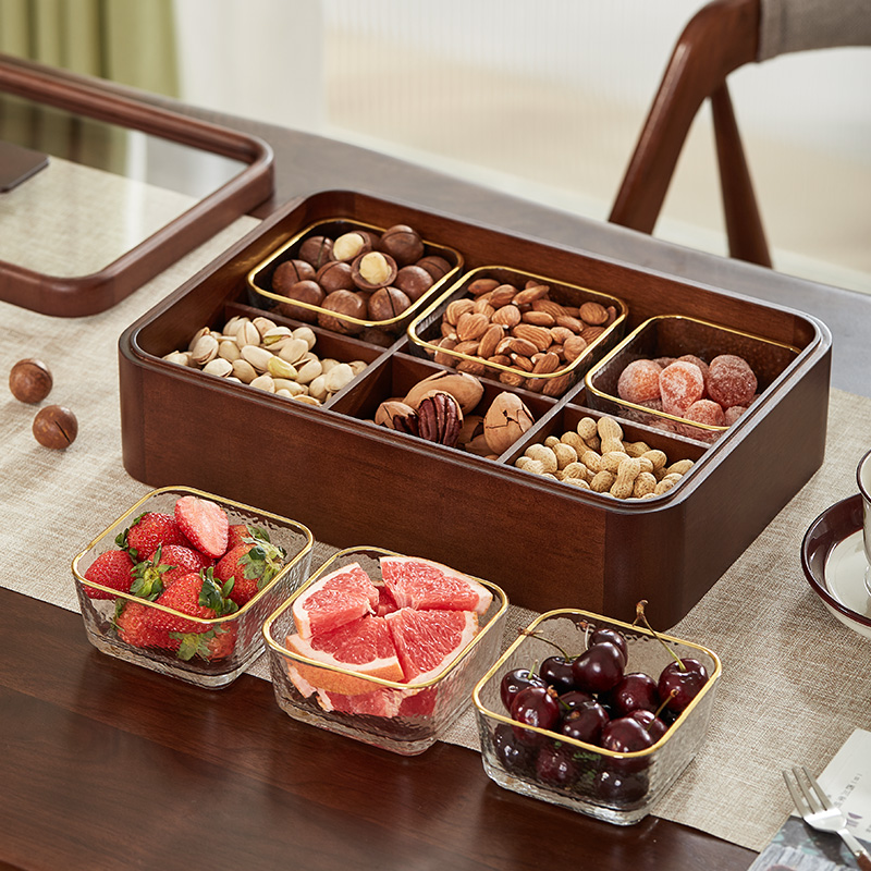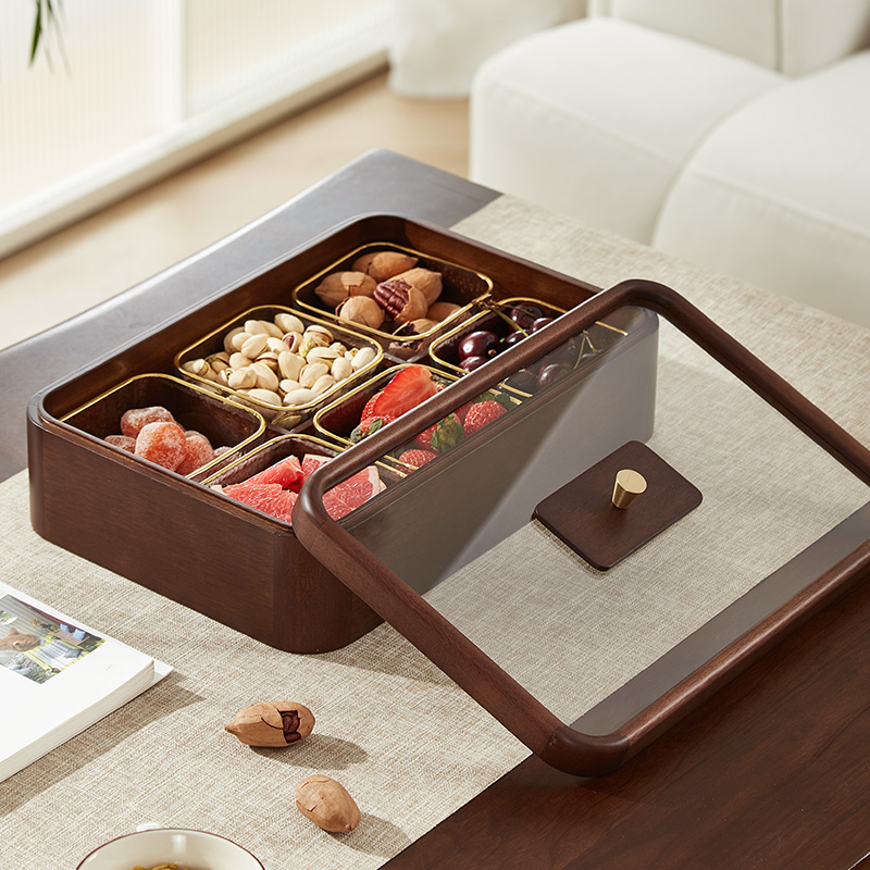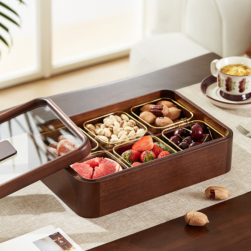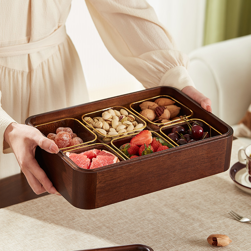 First Heart New Chinese Solid Wood Fruits Pan Nut Snacks Containing Box Living Room Tea Table Home Fruit Dry Fruit Box Candy Box-Taobao