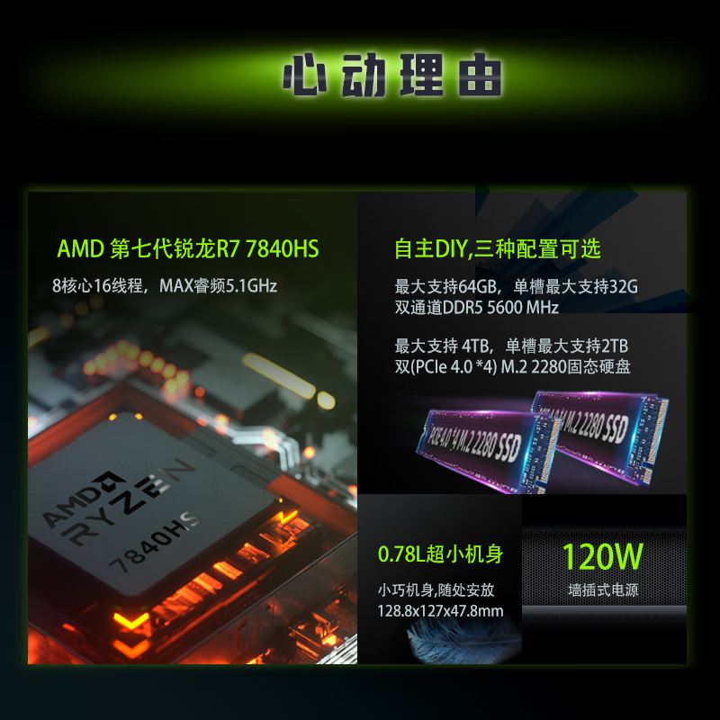 Polar Moor K6 AMD Sharp Dragon 7 7840HS Eight-core Pocket Mini Computer Small Host High Performance Gaming Office Desk Style Machine-Taobao