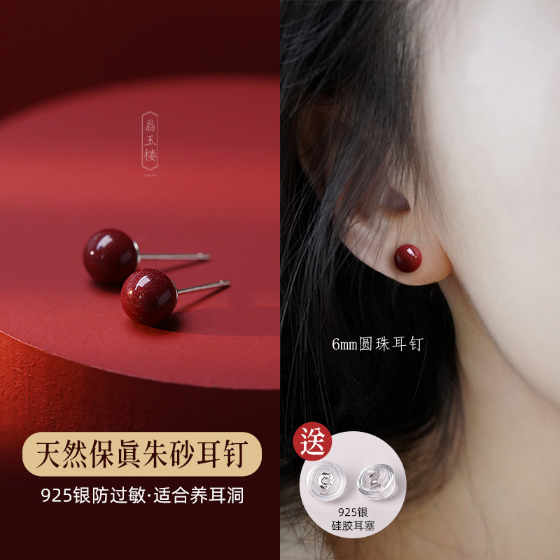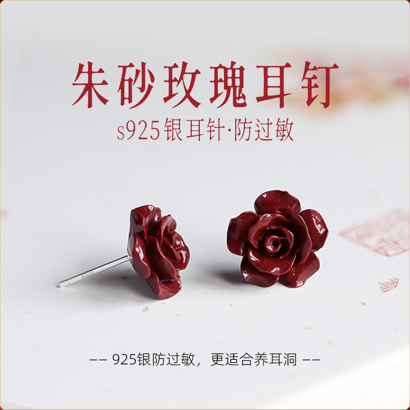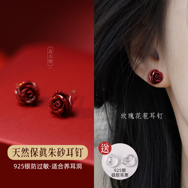 Natural Special Grade Pure Zhu Sand Rose Ear Nail Lady Official Flagship Store Genuine Products s925 Pure Silver Floral Earthen Lady-Taobao