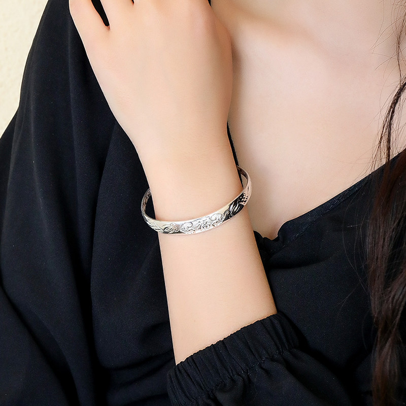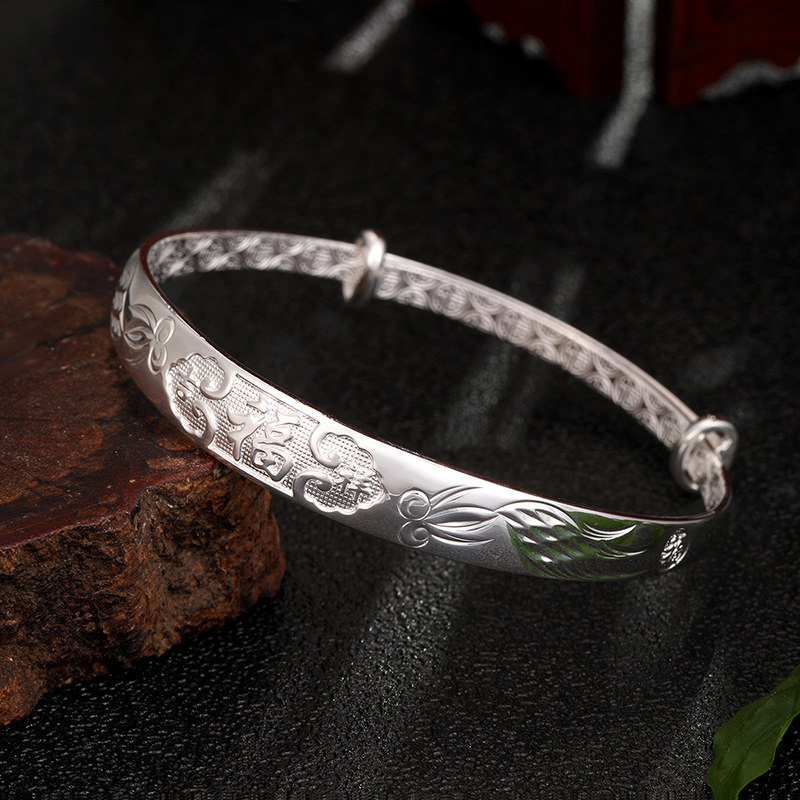Dream Gold Garden Pure Silver Bracelet Foot Silver Bracelet Auspicious Fu Character Push-and-pull Bracelet Lady adjustable to send a mother to her mother-Taobao