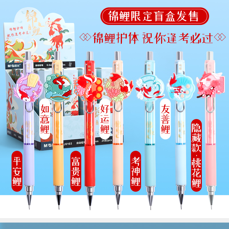 Morning Light Brocade Carp Series Blind Box Automatic Pencil Elementary Students With 0 5 Activity Pencil HB China Wind Cartoon Cute By Moving Pencil Peach Blossom Carp Soft Rubber Jacket Not Easy To Break Core Automatic Pen 3114-Taoba