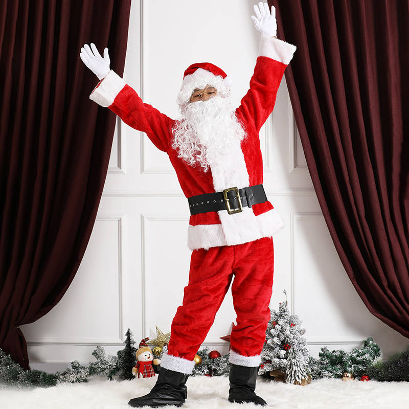 Long plush thickened Santa Claus costume adult male and female big code Christmas clothes cos performance clothing suit-Taobao