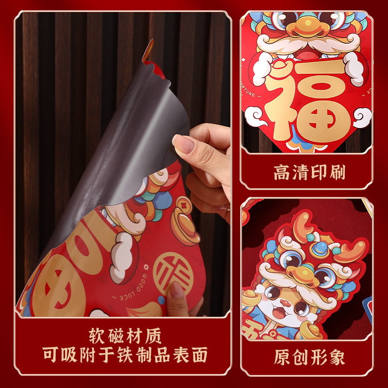 Magnetic attraction to the Spring Festival Home 2024 New Year Spring Festival Spring Festival New Year Spring Festival Decorative Gate Fridge Fu Calligraphy Door Sticker-Taobao