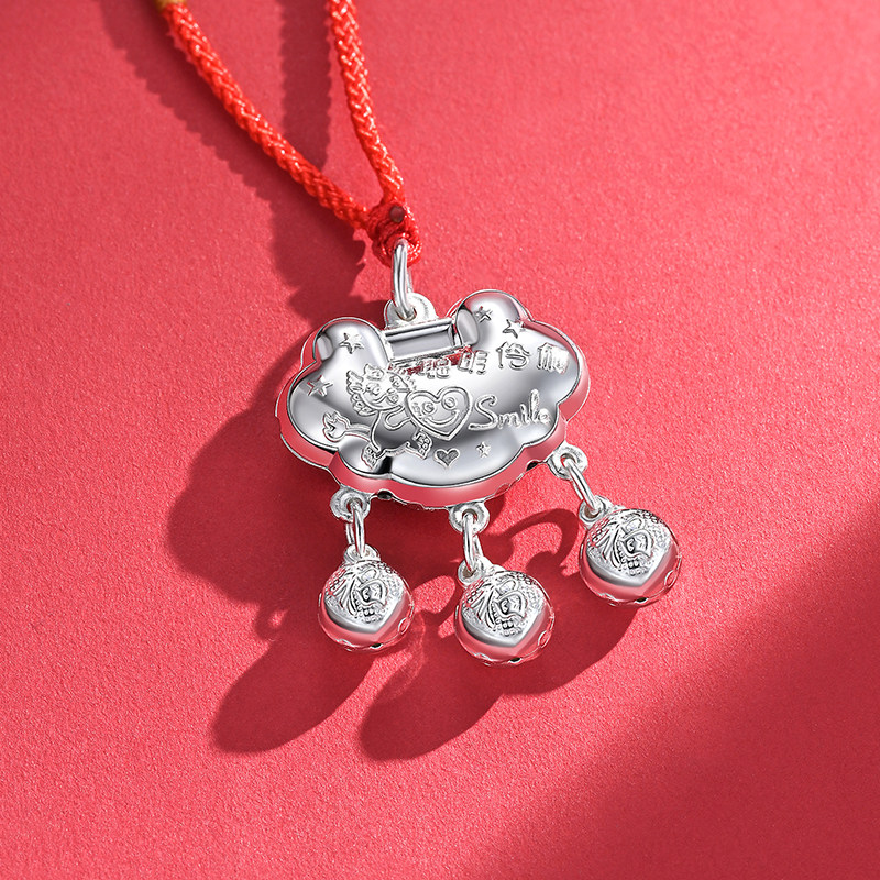 Dream Gold Garden Little Forong Long Life Lock Pendant Pure Silver Bell Lock Bag Foot Silver Zodiac Dragon Hanging Pendant Full Moon Gift Matching Rope-Taobao